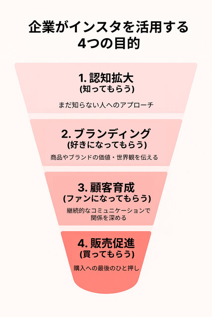 企業がインスタ運用に力を入れる目的は、大きく4つに分けられます。