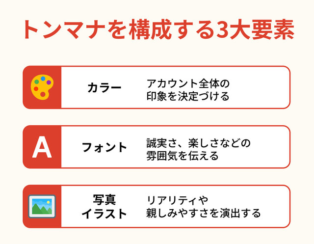 このアカウントの「世界観」や「雰囲気」をデザインの力で意図的に作り出し、一貫性を保つためのルールのことを、「トーン&マナー(トンマナ)」と呼びます。
