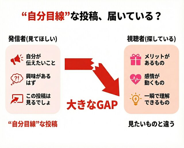 SNSが伸びない人の多くは、無意識に次のような“自分目線”で投稿を作ってしまっています。
