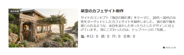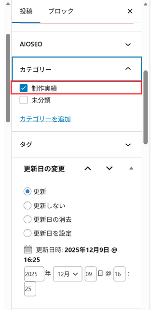 - カテゴリー: 「制作実績」にチェックが入っている(「未分類」は外れている)