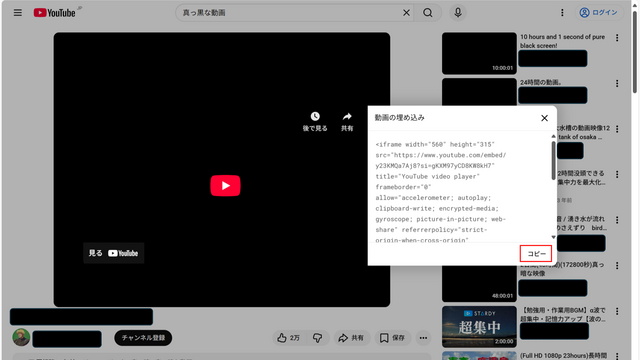 このコードを自身のサイトにペーストするだけで、サイト上で直接動画を再生させることができます。