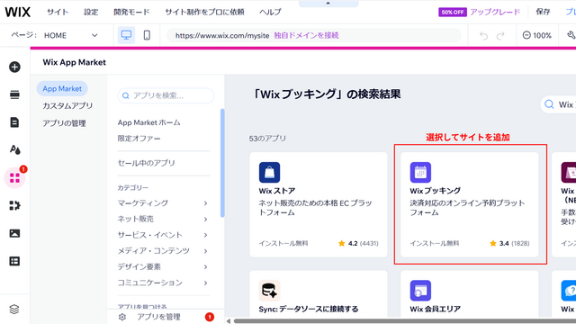 検索するアプリ名:「Wix 販売プラン」
