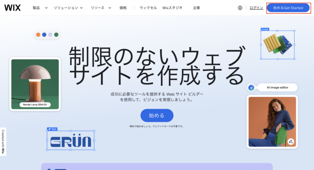 まずは下のWIXの公式サイトに遷移し、「今すぐ始める」からアカウントを作成しましょう!