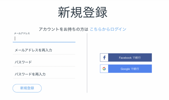 メールもしくはGoogleアカウントで登録できます。